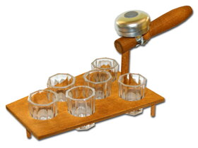 Wasserwaage mit Schnapsgläsern und Glocke CZ