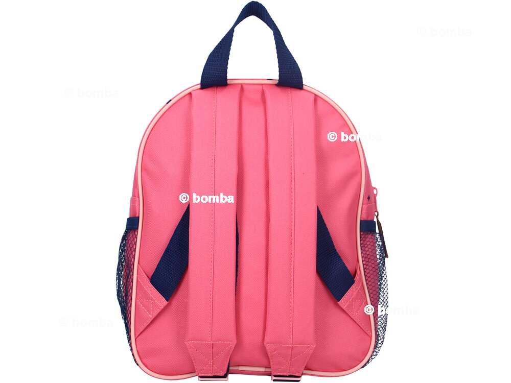 Ein moderner und praktischer Rucksack hat ein Hauptfach und eine kleinere Vordertasche, in die Sie problemlos alles packen können, was Ihre Kinder für Tage außerhalb des Hauses benötigen. An beiden Seiten gibt es Staufächer für Flaschen, Taschentücher oder andere Kleinigkeiten. Die Reißverschlüsse sind mit farbigen Griffen versehen, um die Handhabung zu erleichtern. Verstellbare Schultergurte sorgen für Tragekomfort. Der Rucksack kann an einer Schlaufe aufgehängt werden. Die Abmessungen des Rucksacks sind 29 x 23 x 8 cm.