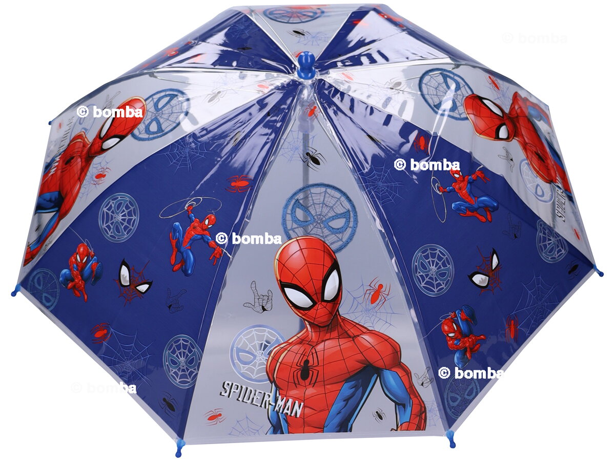 An regnerischen Tagen schützt ein fröhlicher Kinderschirm mit Spiderman Ihr Kind vor dem Wetter. Er ist leicht und einfach zu handhaben, sodass Ihr Kind ihn mühelos selbst bedienen kann. Dieser tolle Stockschirm ist transparent und verfügt über einen runden Griff, der für einen guten Halt sorgt. Die Maße des Regenschirms sind 60 x 71 x 71 cm.